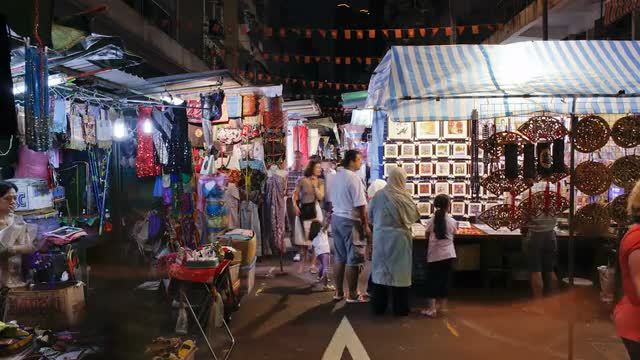 Time lapse of people shopping in Temple Street Night Market, Kowloon, Hong Kong, China