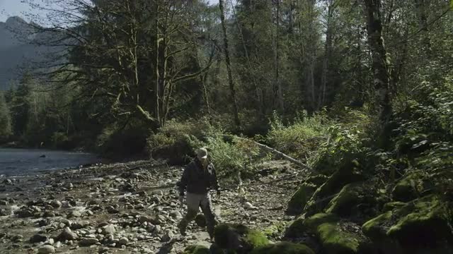 212566 - Fly Fishing Man Hiking Reverse Track