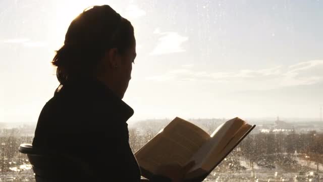 58106 - Silhouette of a person reading a book.