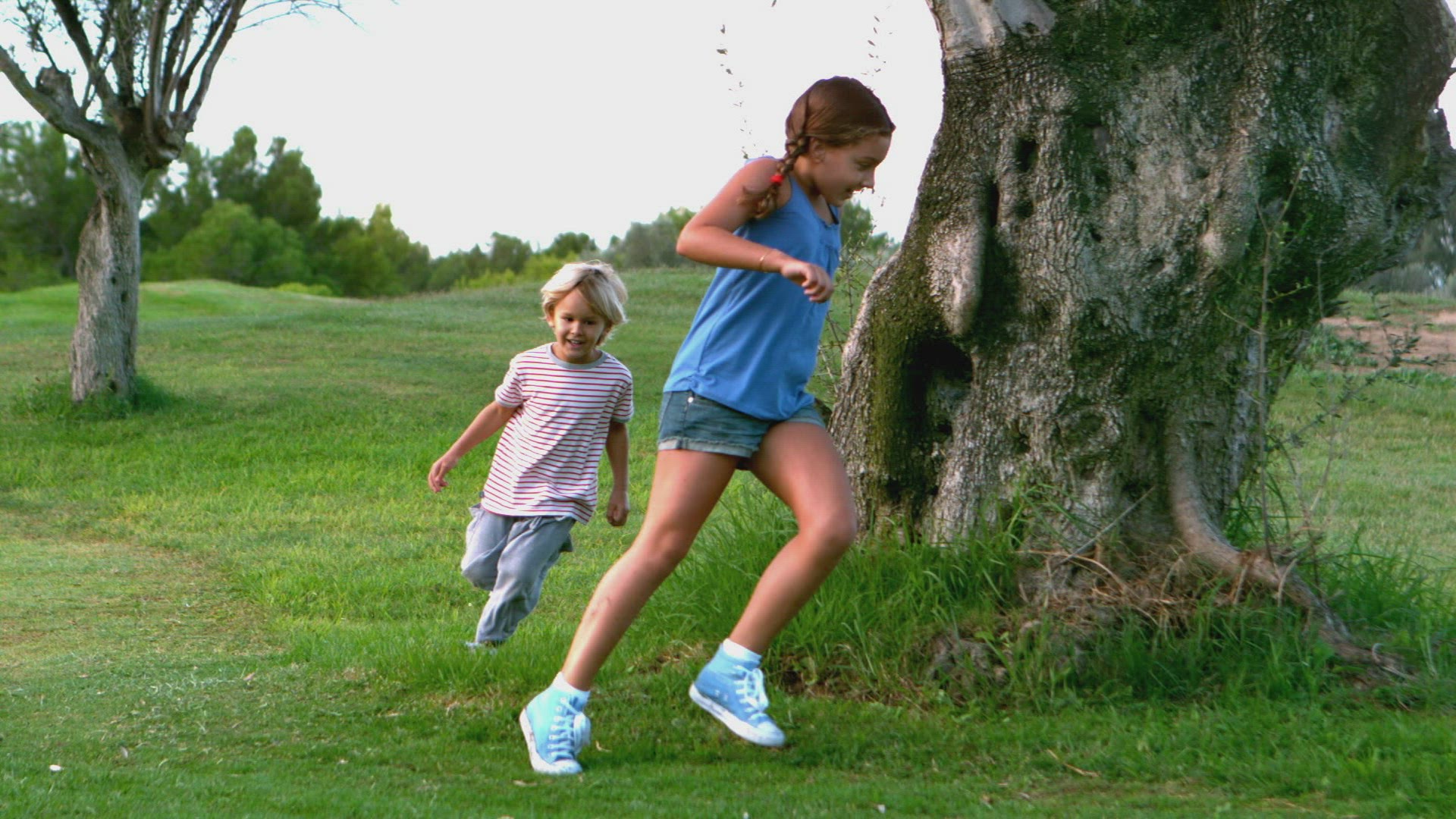 573732 - Group Of Teen Friends Run (Away From Camera) Down Sandy Beach, Toward Sunset