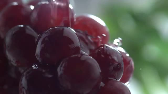 > Water splashing on grapes in slow motion; shot on Phantom Flex 4K at 1000 fps