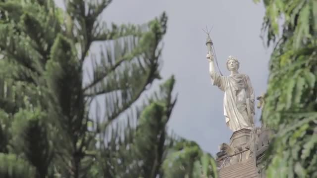 A point of view through the trees of a famous monument - Flora Fountain in Mumbai, India.
