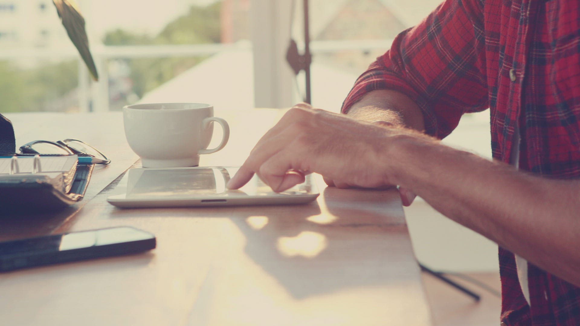 560777 - The man on tablet computer looking information on the Internet.