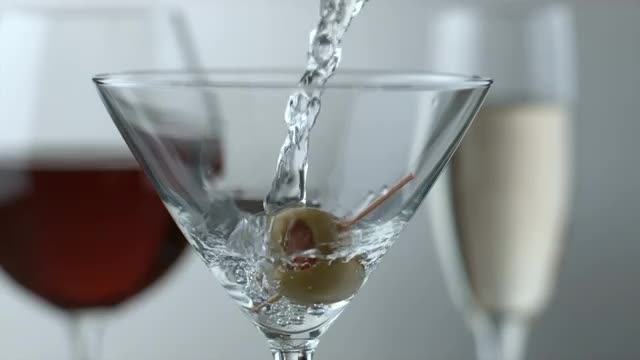 > Pouring a martini, slow motion; shot on Phantom Flex 4K at 1000 fps