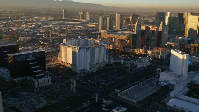 > Las Vegas, Nevada, USA - November 26, 2014: Aerial view of Las Vegas Strip at sunset