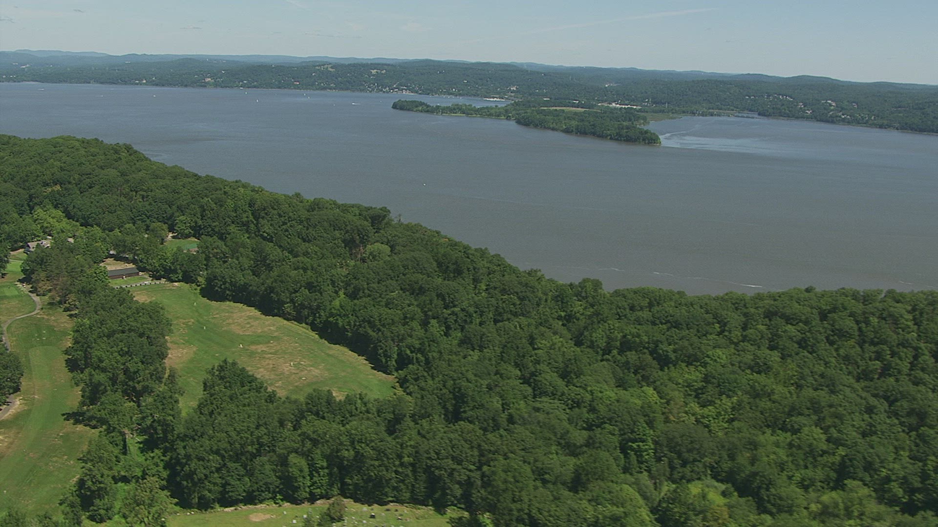 > Aerial shot of golf course along Willamette River, Oregon: 4K Ultra HD