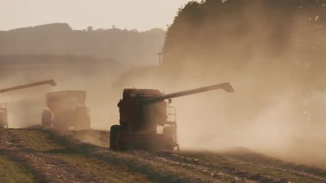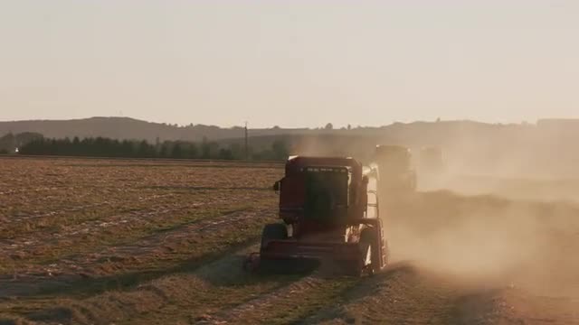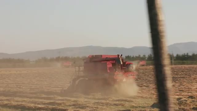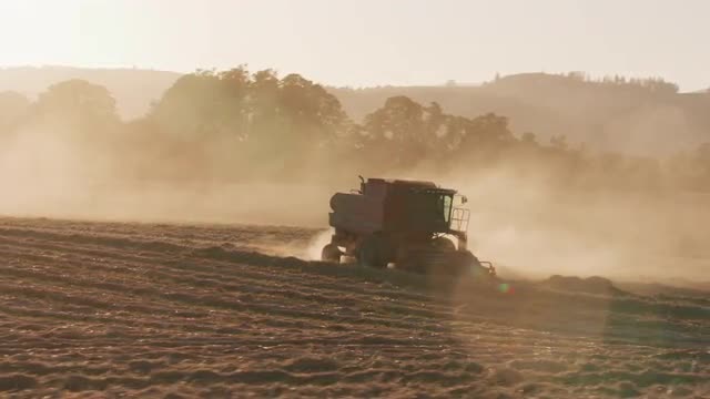 999980 - Tracking shot of combine in field at sunset, Willamette Valley Oregon, USA.