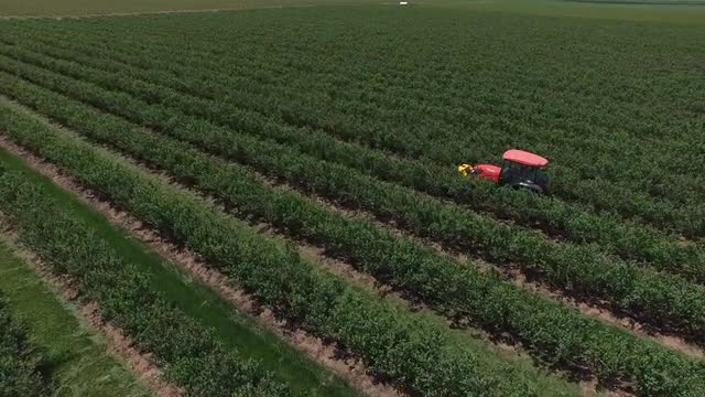 373149 - Tractor spraying blueberry field.