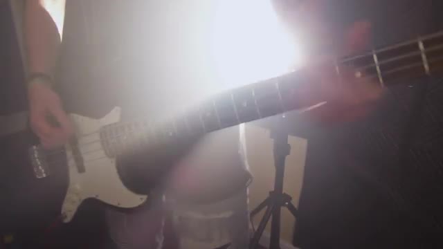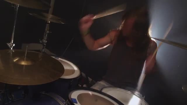 > Man playing drums in heavy metal rock band, slow motion