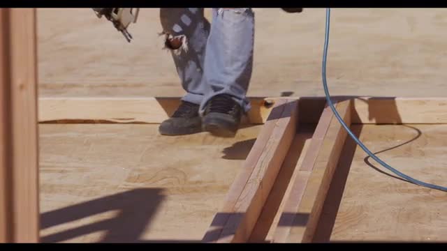 381628 - Construciton worker using nail gun in slow motion
