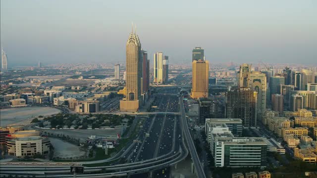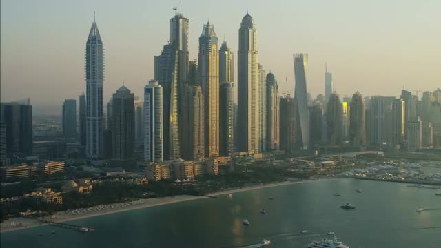 Dubai - November 18: Aerial skyscrapers in Media City nr Palm Jumeirah Dubai November 18, 2012 RED EPIC