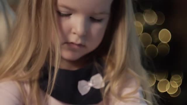 637556 - Young Girl Dance Hands on Bokeh Xmas Eve Lights New Year Tree Confetti Christmas