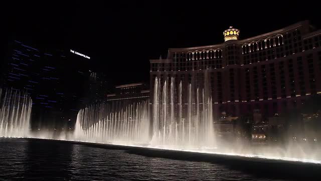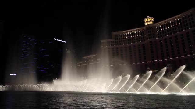 > Las Vegas, Nevada - April 8, 2014: Bellalgio Fountains and Paris hotel - Las Vegas Strip