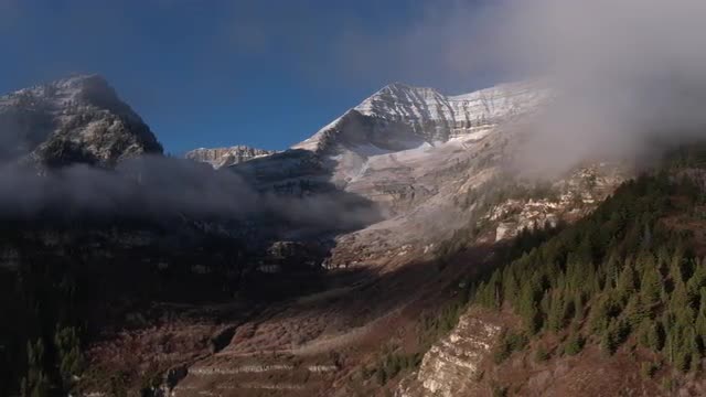 747001 - Panning aerial view of snow capped mountain