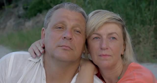 Back view of romantic couple at home or in hotel room. Woman opening the curtain, they embracing gently and looking out the window. Happy time together