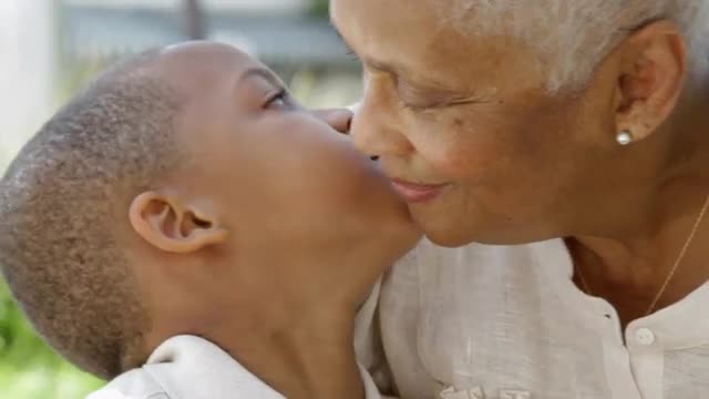 Child and grandparents in the plane. Happy boy and grandmother hugging, grandfather sitting nearby