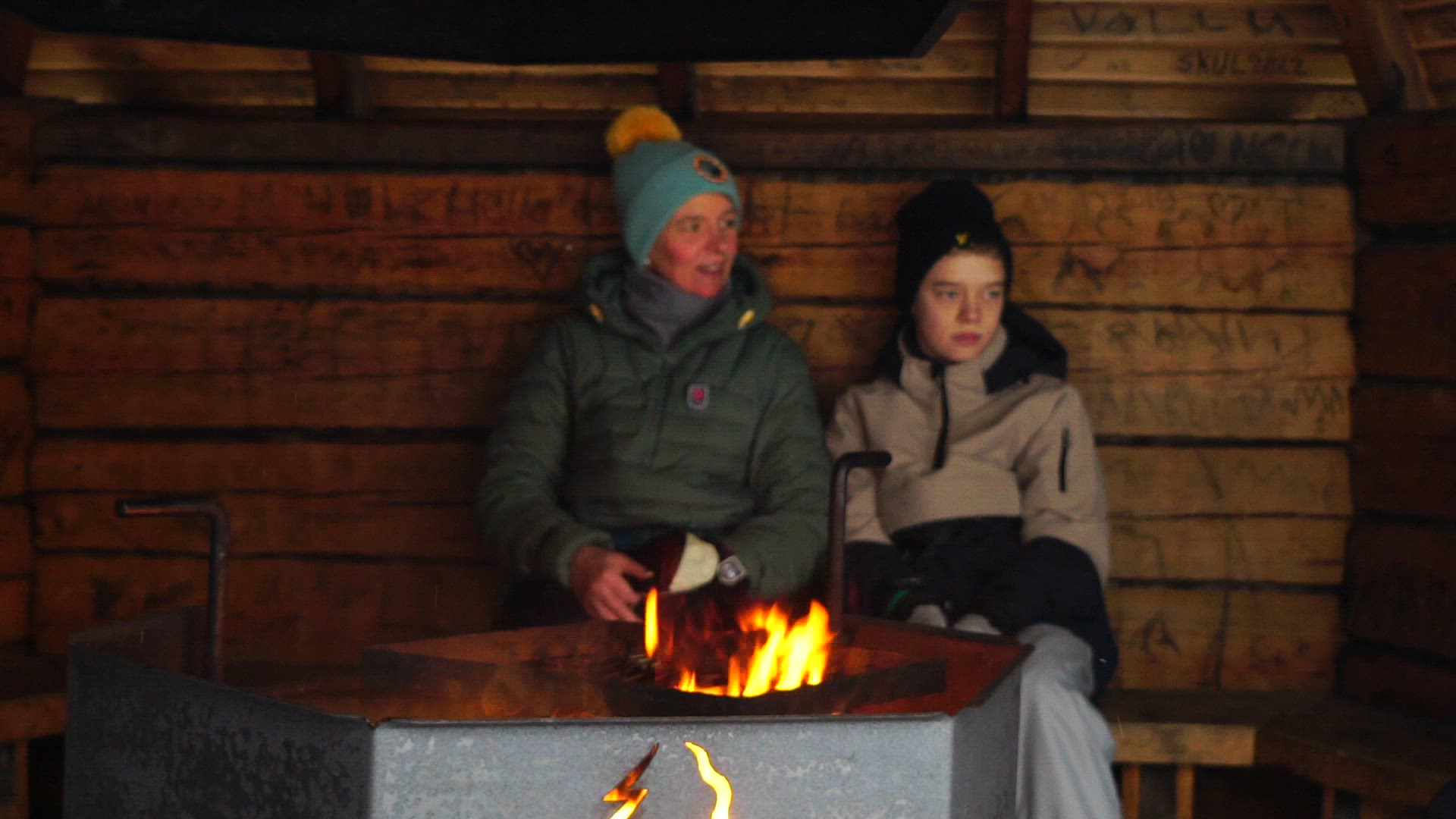 Happy family and Bengal fire at night. Mother holding sparkler, then she and father kissing child while he looking at light which going out at the end