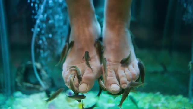 Close-up shot of woman getting relaxing foot massage with hot stones at beauty spa salon