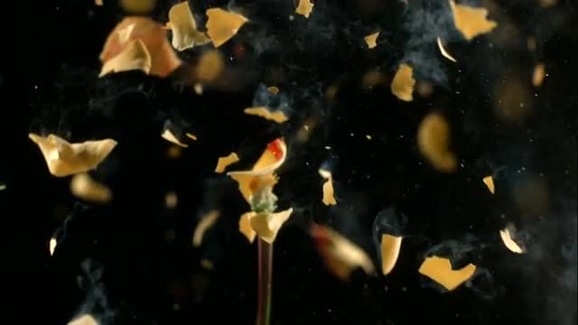 Flower frozen in liquid nitrogen explodes in slow motion. Shot at 1000 frames per second on a Phantom Camera.