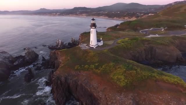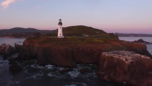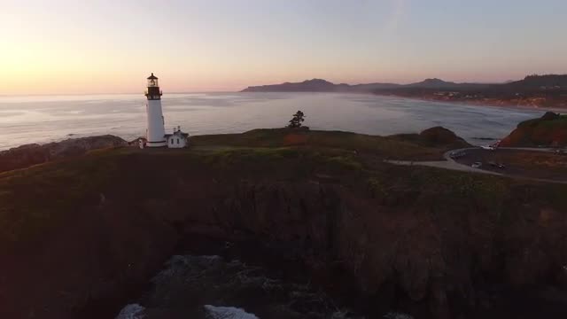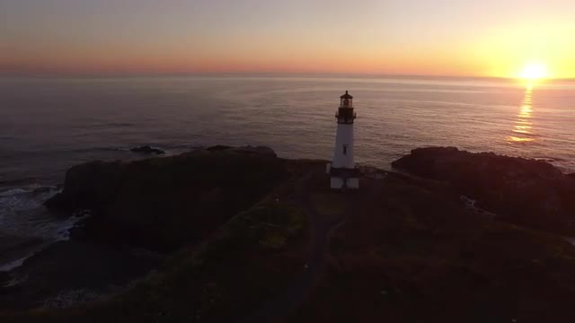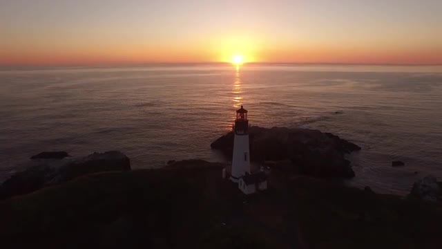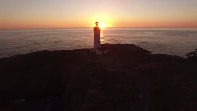 376176 - Aerial view of Yaquina Bay Lighthouse at sunset, Newport, Oregon