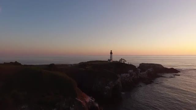 376164 - Aerial view of Yaquina Bay Lighthouse at sunset, Newport, Oregon