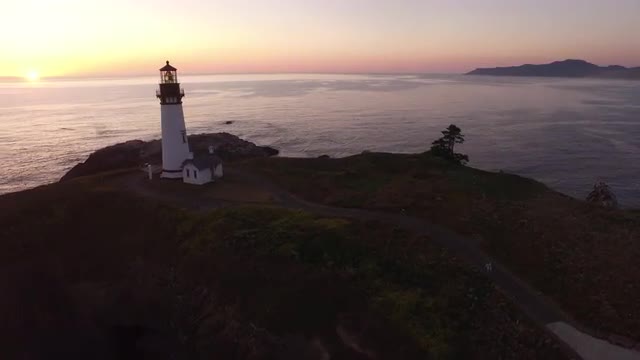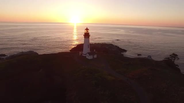 376183 - Aerial view of Yaquina Bay Lighthouse at sunset, Newport, Oregon