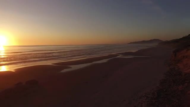 Aerial shot of Oregon coast at sunset