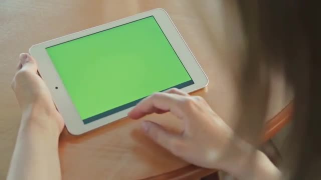 > Woman busy with phone talk and using pad in cafe