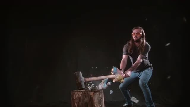 > Man smashing ceramic angel with hammer in slow motion, shot on Phantom Flex 4K at 1000 fps