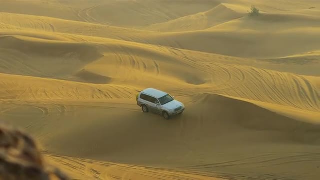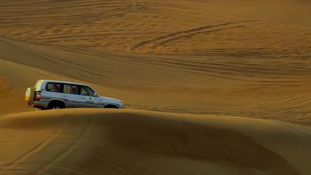 Dubai - December 2012: 4x4 off road vehicles taking visitors to Dubai on a desert safari shot on RED EPIC
