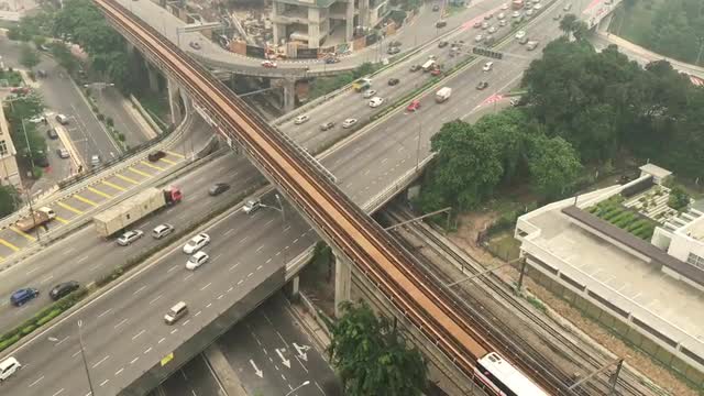 4k footage. Aerial view of Kuala Lumpur during haze. Roads and train.