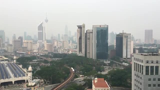 4k footage. Aerial view of Kuala Lumpur during haze. Roads and train.