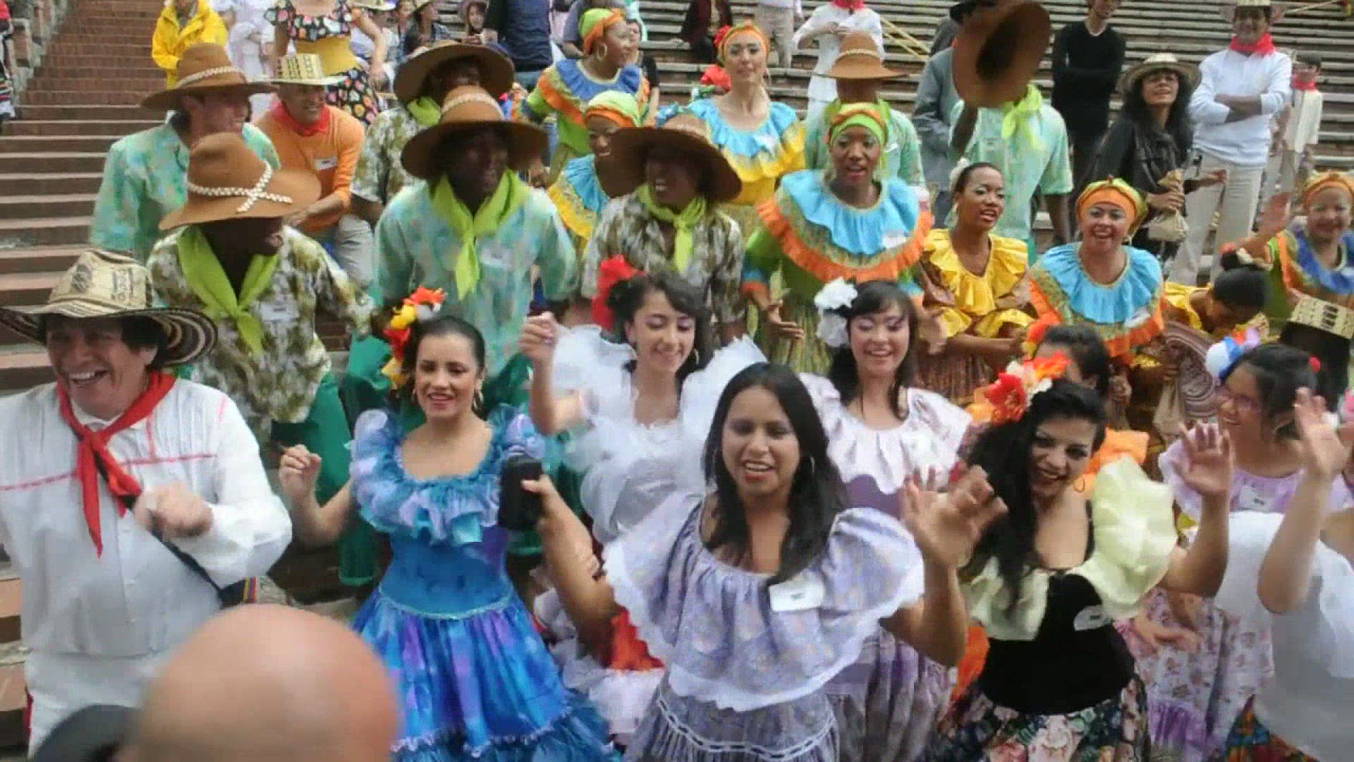 Aerial gymnasts performing among the fountains and bubbles