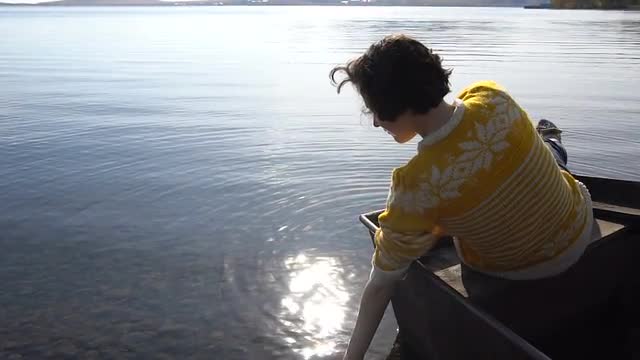 VENICE, ITALY - FEBRUARY 20, 2015: Slow motion and dolly shot of a woman looking out the open window. City view with old grungy houses and two boats sailing by