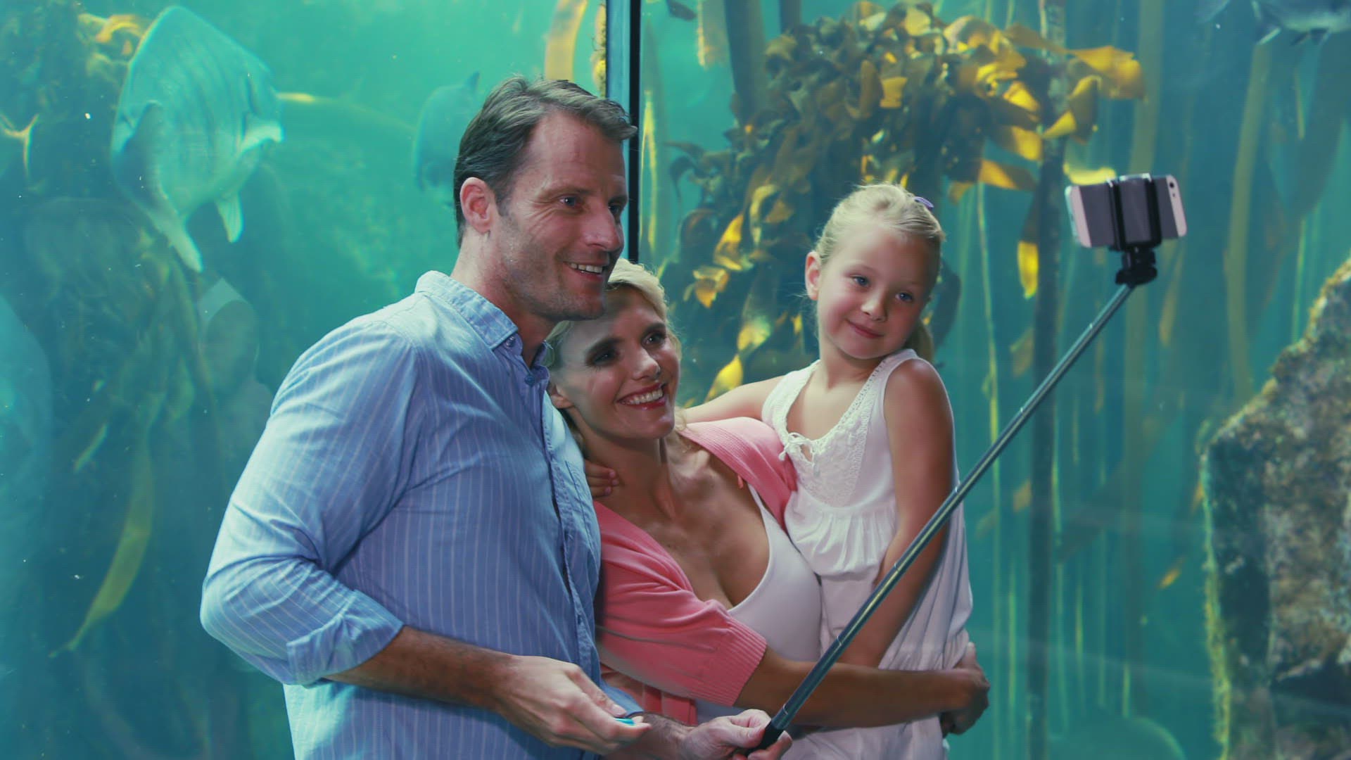 Slow motion selfie shot made by white man while snorkel diving.