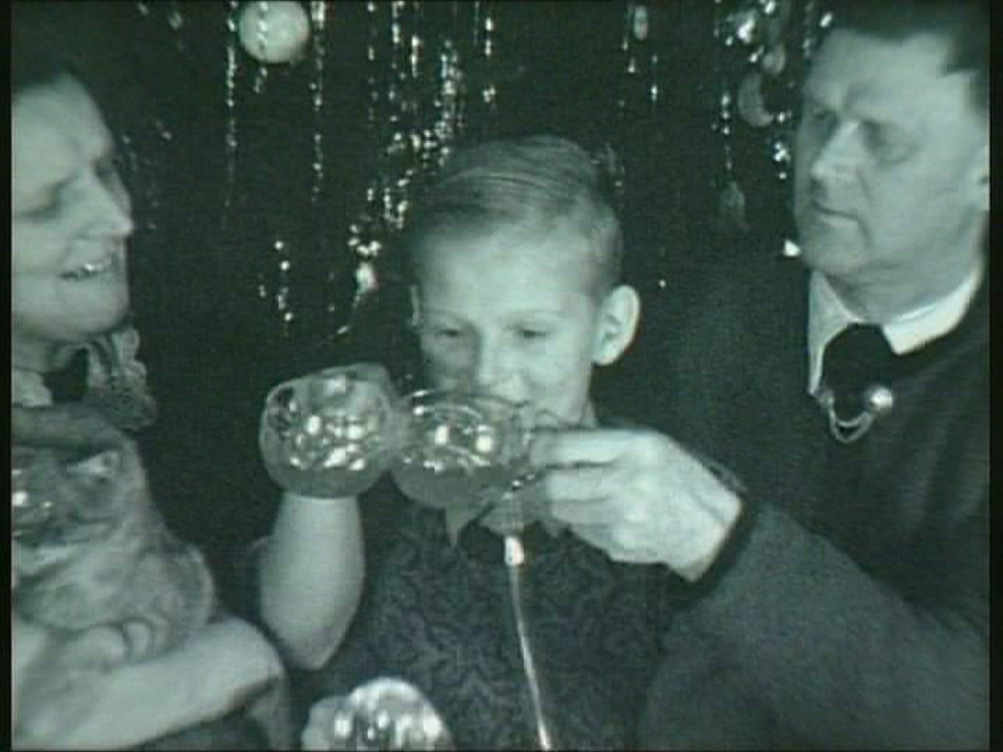 Steadicam slow motion shot of a mature man and his adult son fighting in joke, son is trying to punch father's palm.