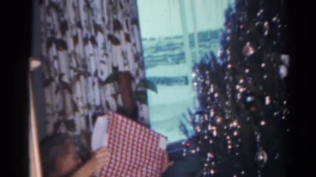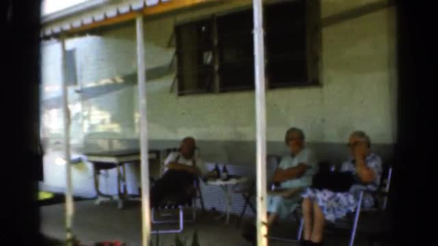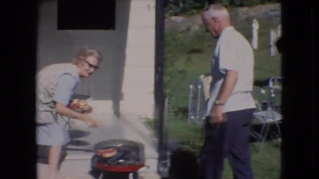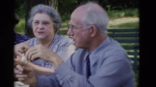 Slow motion, steadicam and close-up shot of an aged woman in glasses using retro video camera at home