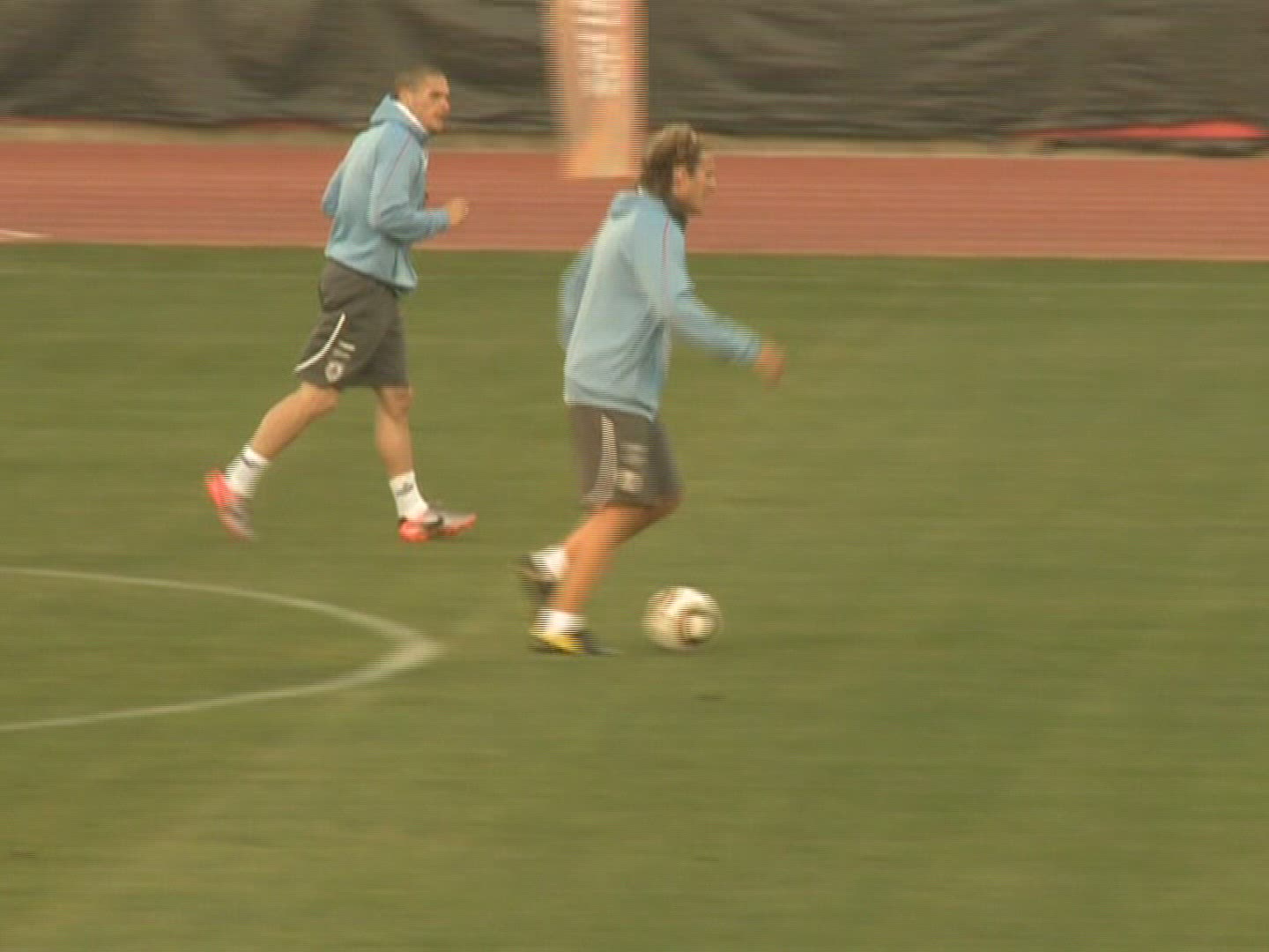 ST. PETERSBURG, RUSSIA - APRIL 5, 2015: Slow motion of football team having a training before the soon match. Coach supervising players. Zenit-CSKA football match, Russian Championship, Premier League