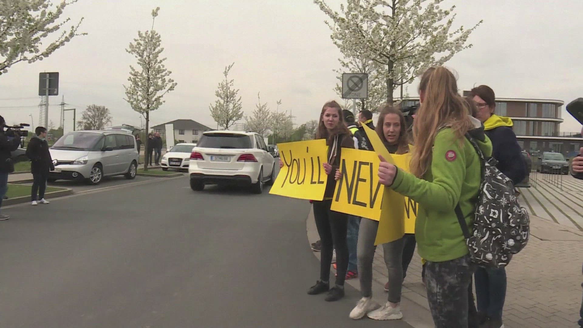 ST.PETERSBURG, RUSSIA - APRIL 5, 2015: Slow motion shot of stadium stand with football fans. They are applauding to support their favorite team.