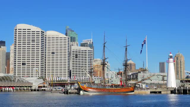 High angle wide shot of construction site, Darling Harbour, Sydney in 4k