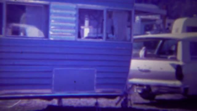 > 1962: Kids in kiddie car and wagons pulled around trailer home park.