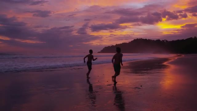 Boy running on beach at sunset, Costa Rica. Shot on RED EPIC for high quality 4K, UHD, Ultra HD reso
