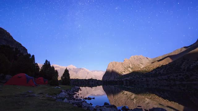 > Moon lights the mountains. TimeLapse. Pamir, Tajikistan. 4K