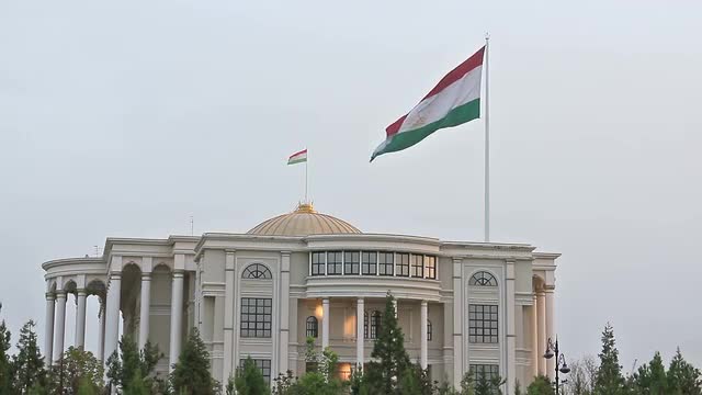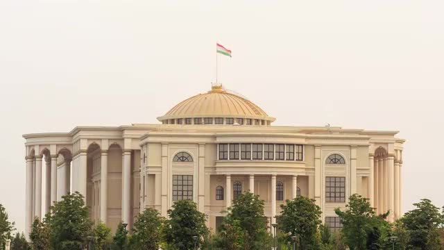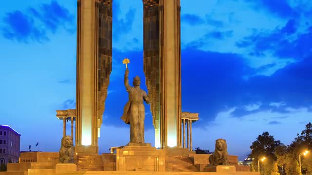 Statue of Somoni at dawn. Dushanbe, Tajikistan. 4K