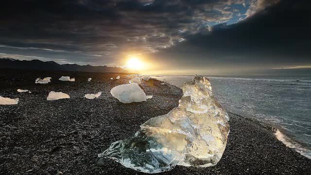 Time-lapse of Ice Beach near Jokulsarlon glacial lagoon, Iceland.