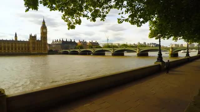 > Tourist rush hour on Westminster Bridge in London. Time-lapse.