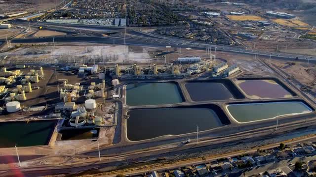 Aerial view Stratosphere Tower Hotel and Casino, Las Vegas Strip, Nevada, USA, RED EPIC