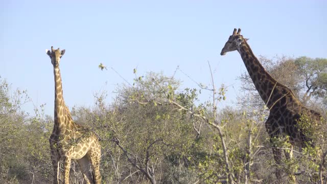 941636 - Male and female Giraffes stand on alert