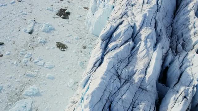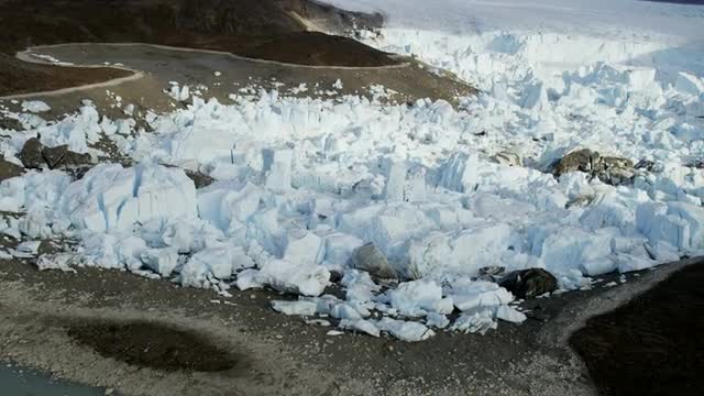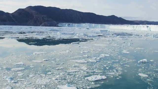 > Aerial Eqi Glacier Arctic Circle Greenland Melting Icecap Environment