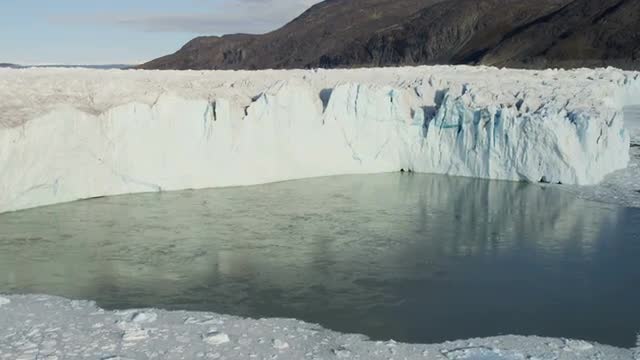 Aerial environmental damage melting arctic icecap glacial frozen water pollution geography change Disko Bay Greenland RED EPIC